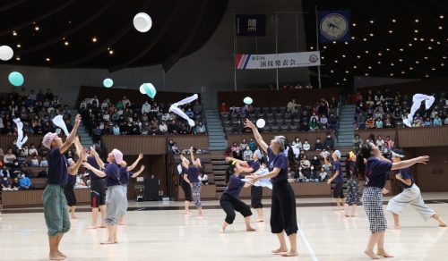 リズム体操を指導しています。毎年素晴らしい演技を私の教室の会員さんと観に行くのを楽しみにしています。そして私達シニアも感動してもらえるような楽しい発表会を心掛けて踊っています。皆さん頑張って下さい。